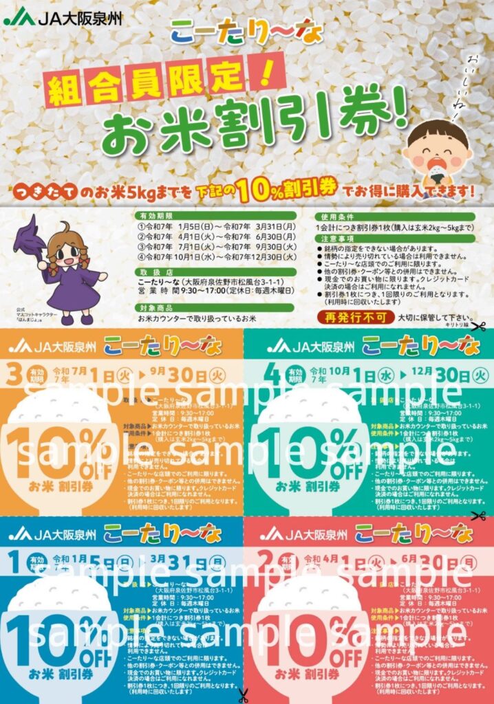 また組合員限定のお米10%割引券(令和7年10/1~12/30分)も利用できます!