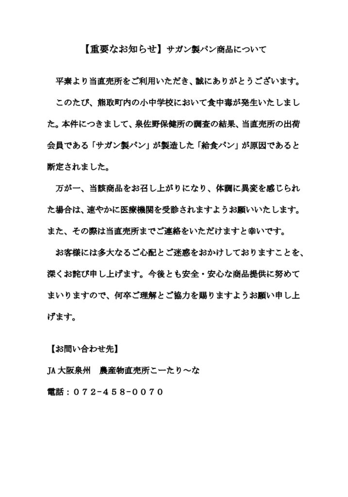 サガン製パン商品について